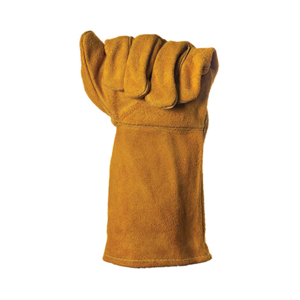 Γάντια Ηλεκτροσυγκολλητών μήκους 40 cm χρώματος καφε από σχιστό δέρμα μόσχου. Διαθέτουν ενισχυμένη εσωτερική φόδρα αλλά και ραφές Kevlar. Είναι αρκετά άνετα, εύκαμπτα και ανθεκτικά.