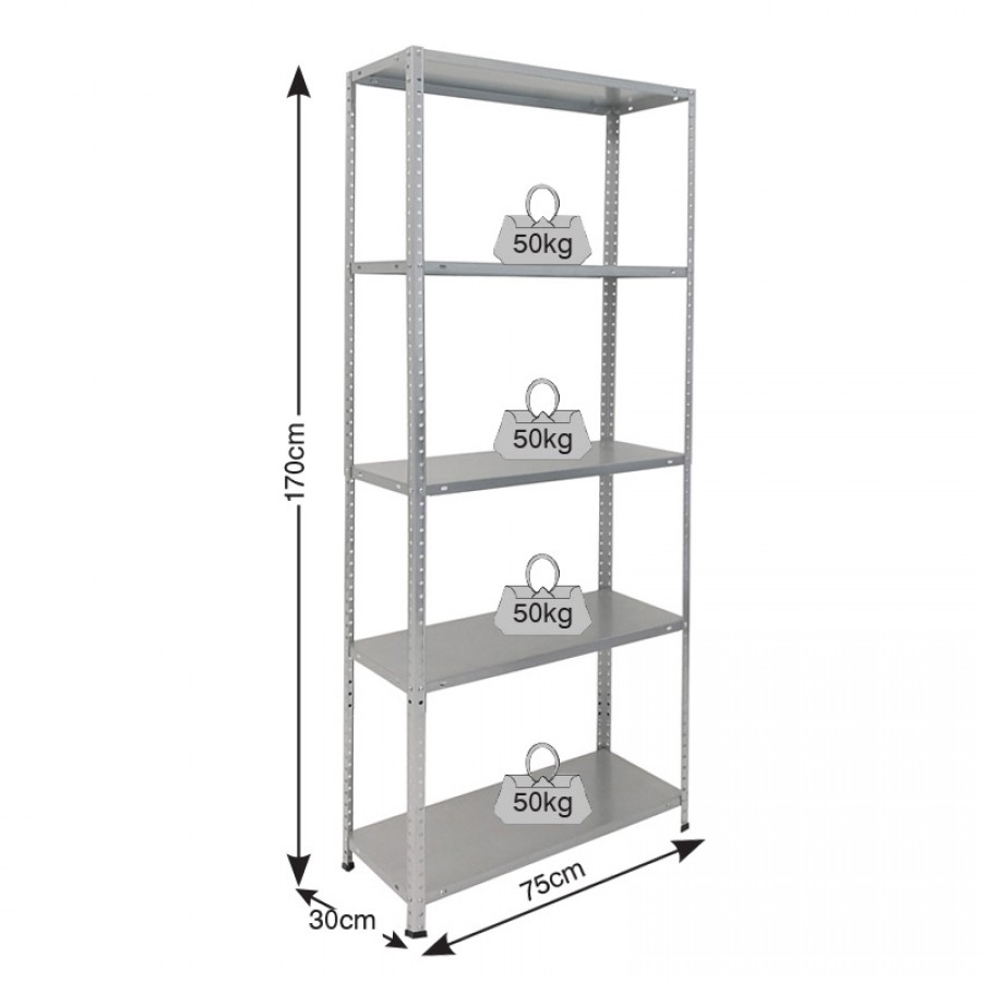 Ραφιέρα Μεταλλική Γαλβανιζέ Με 5 Ράφια 75x30x170